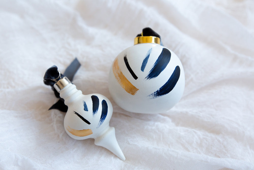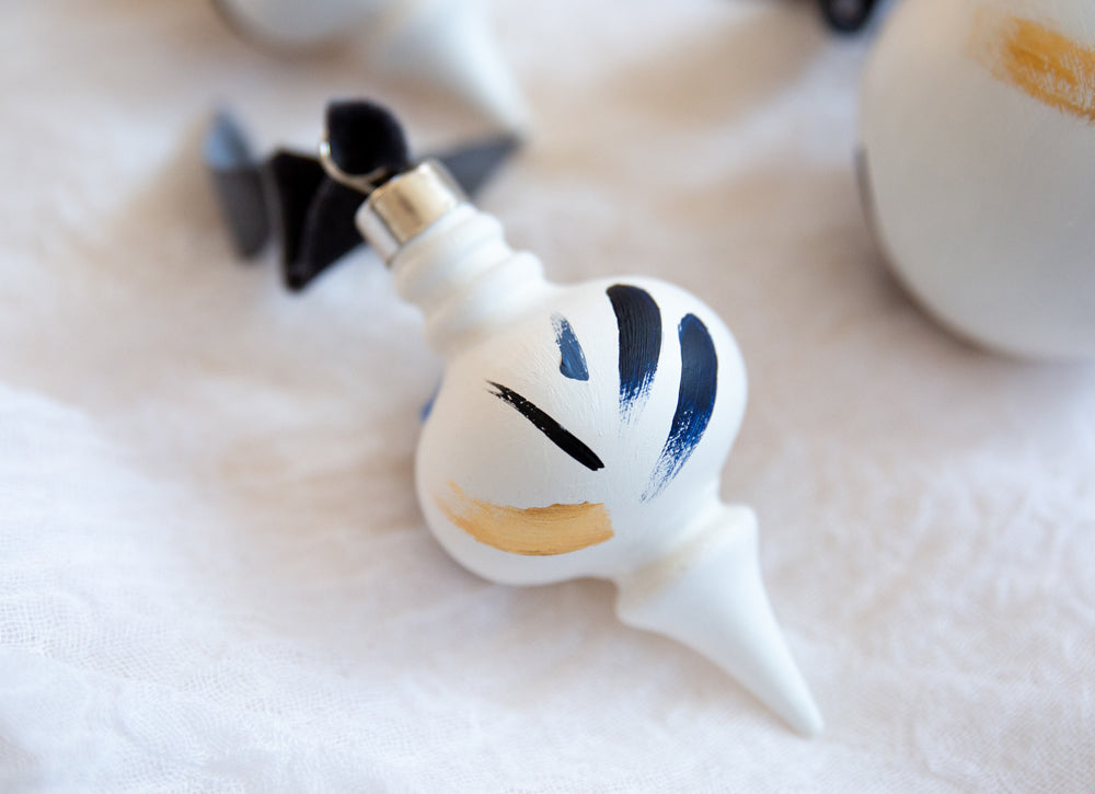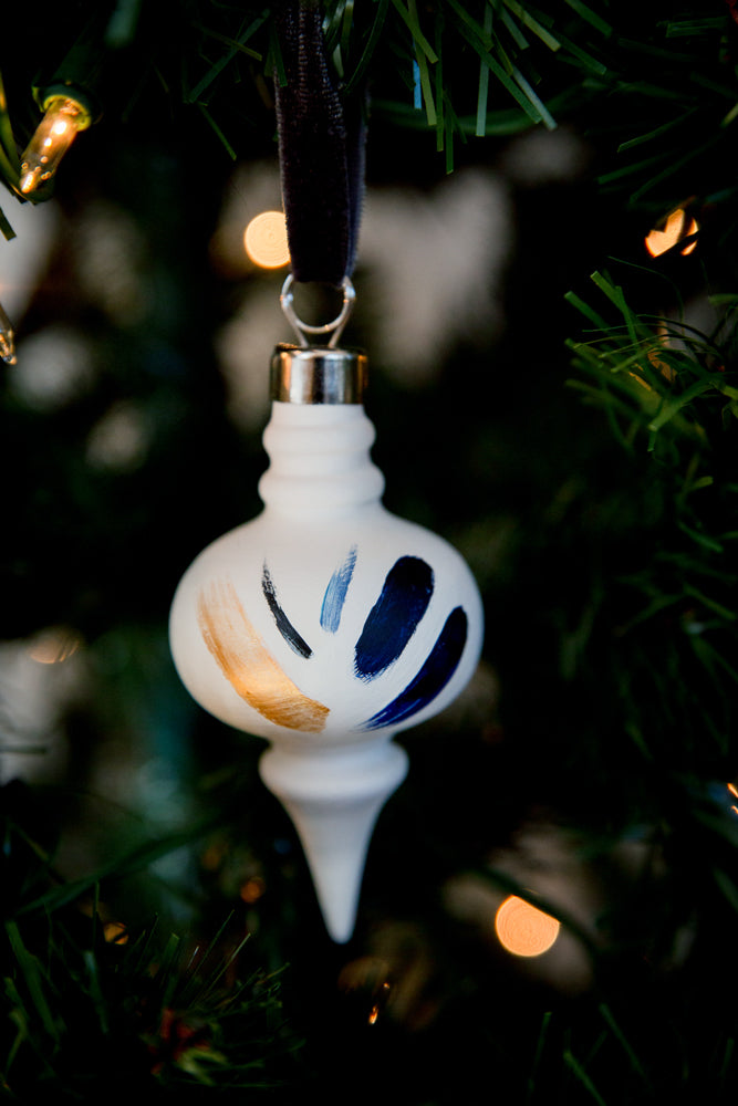 These hand painted ornaments are a mini piece of original art. Made with layers of cool blues and cream paired with highly saturated tones of sapphire and gold metallic paint, then topped with a coordinating velvet ribbon. These ornaments provide a completely unique look for your holiday decor. Not to mention, they would be the perfect gift for anyone on your list!