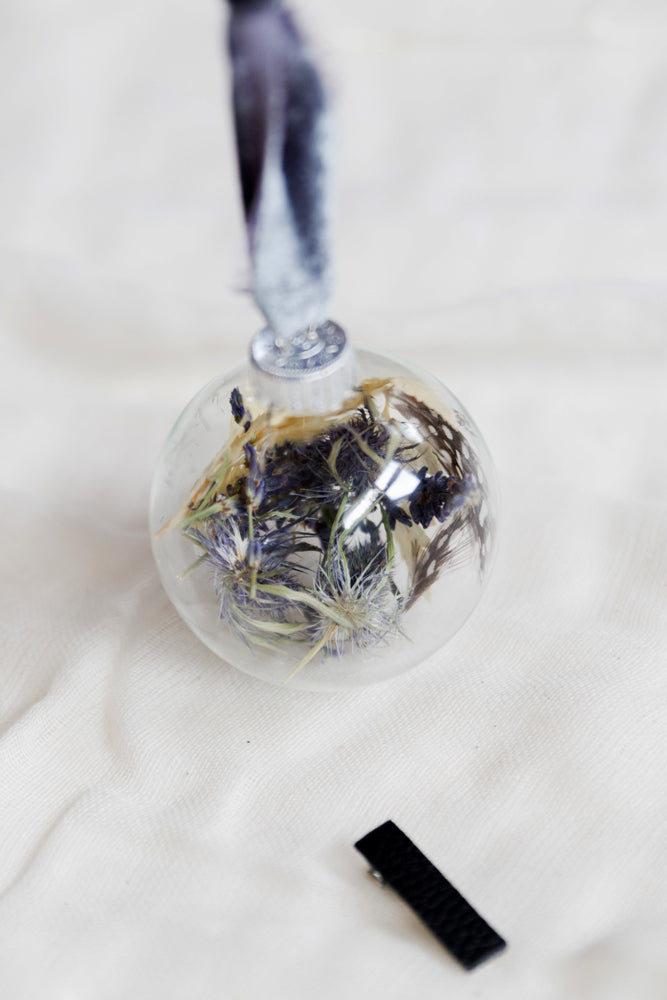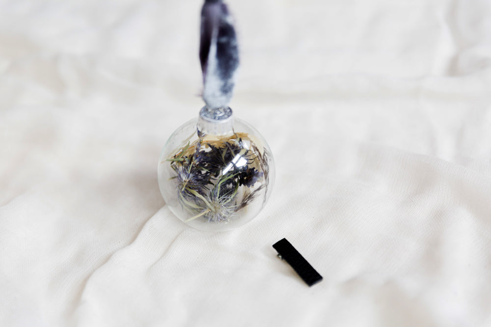 This gift bundle includes a one of a kind dried floral ornament (each design is unique and the florals vary) and the mini leather hair clip.